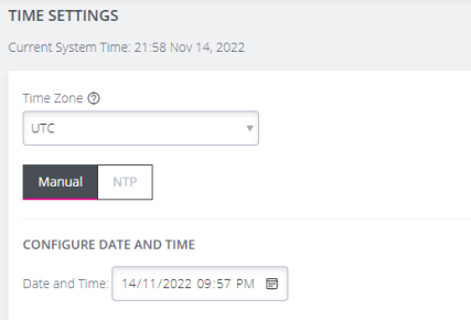 Navigate to CONFIGURE > SYSTEM > DATE & TIME > TIME SETTINGS.