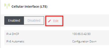 - Navigate to CONFIGURE > NETWORK CONNECTIONS > Network Interfaces > Cellular Interface (LTE.