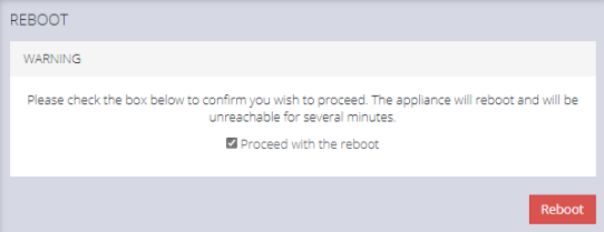 Navigate to CONFIGURE > SYSTEM > Reboot.